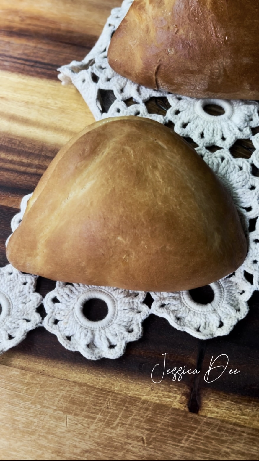 - Warm water to 100 °F, add yeast and a big pinch of sugar. Mix and let it sit for 10 minutes. Combine flour, sugar and baking powder in mixing bowl. Set aside. Using dough hook attachment, add yeast, eggs and butter to flour mixture. Knead on medium speed for 6-8 minutes. It should be soft, but not sticky. Place dough on lightly floured working surface. Bring dough together. Divide dough into 12 equal pieces. Roll each piece into a ball. Cover and let them proof for 15 minutes. Preheat oven 375 °FWith rolling pin, roll dough into about a 5-inch oval. Place about 2 TBS of filling at top part of dough. Leave enough room around the edges to seal. Fold bottom part of dough over the filling, seal dough around the filling. Using palm, gently press down on dough. Place on parchment lined baking sheet. Brush with milk. Bake for 20 minutes.Let cool down before eating. Filling will be really hot.