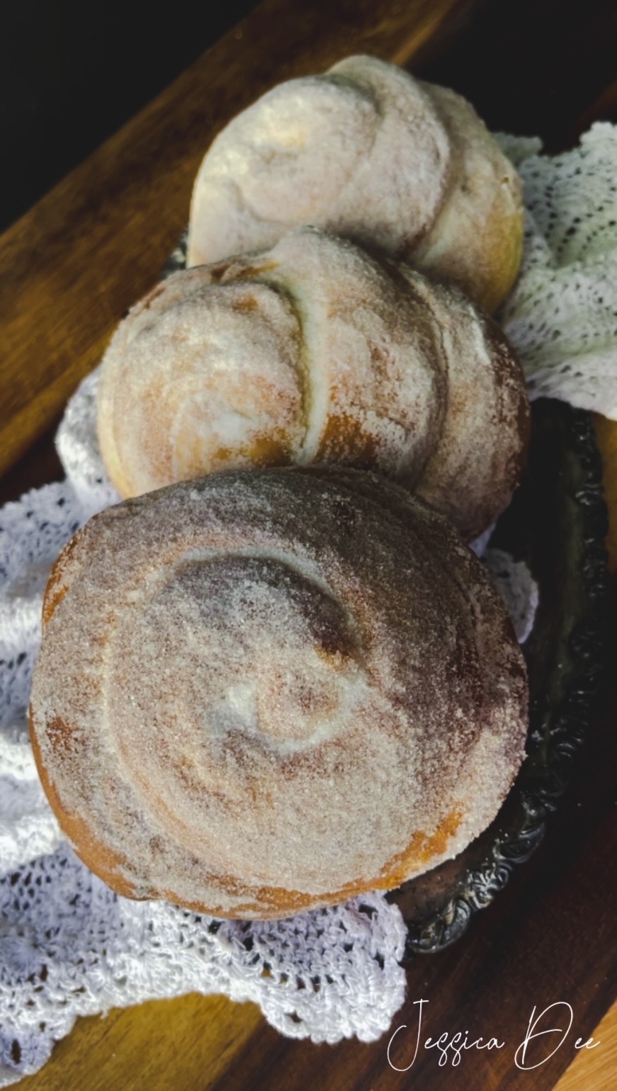 - In a large bowl: mix flour, salt, sugar and vanilla. Then add warm milk (100F) and egg yolks. Mix gently. Incorporate the butter in pieces, little at a time. Mix with spatula. Dough will be slightly sticky. When everything is well incorporated, add yeast mixture. Gently combine. Using mixer and bread hook attachment, knead bread for 15 minutes. Dough should be soft and sticky enough to peel off of table.Once dough is ready, fold into a ball. Cover and let proof 1-2 hours, should double. Preheat oven to 355 FPunch air out of dough. Divide and weigh 60g pieces. Split this piece in half and place bottom piece on parchment line baking sheet. Stretch and roll out top piece into a long pole. Swirl dough into a circle, place on bottom half and press down. Make sure bread is about 1 inch from each other, they will expand. Brush entire top with water. Cover with a damp towel, proof for 1 hour. Bake for 20-25 minutes or until golden. Remove and let cool down a little. Brush with butter and generously dust with fine sugar.