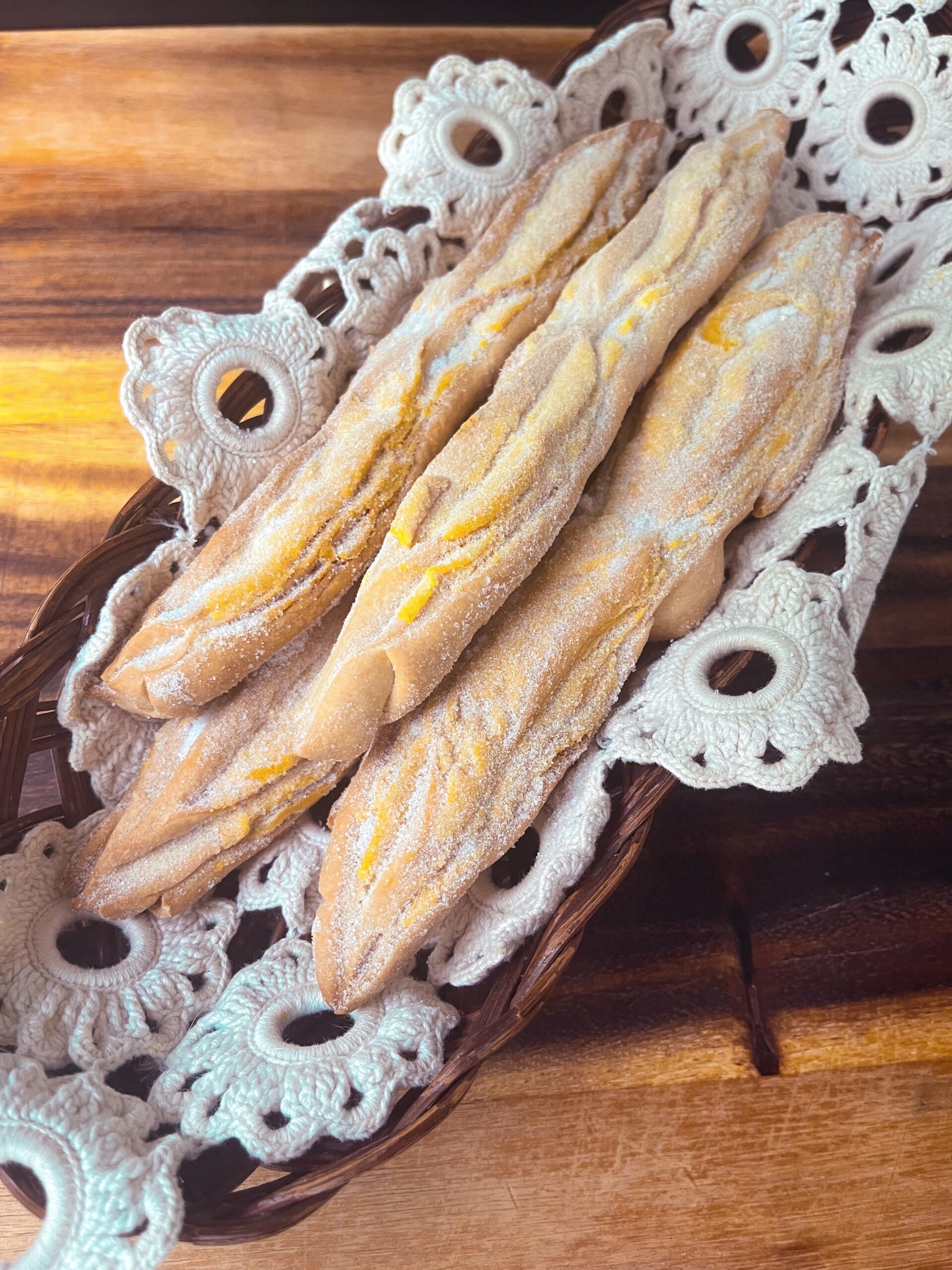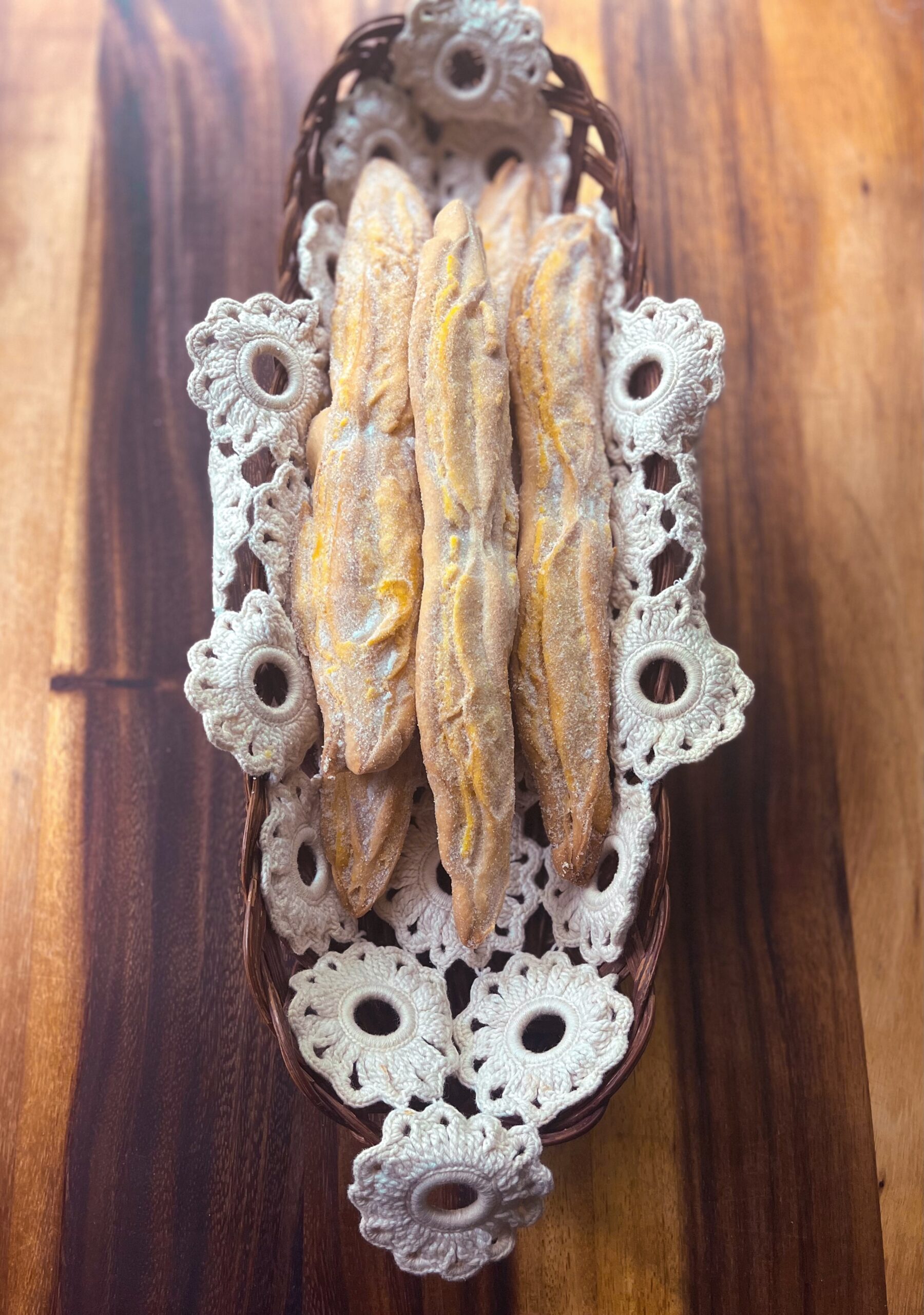 I think troncos taste the best right out of the oven. Of course, let them cool down a bit so you don’t burn mouth. It kind of reminds me of a thick, sweet bread stick. Crunchy along the outside golden edges and a little soft in the middle.