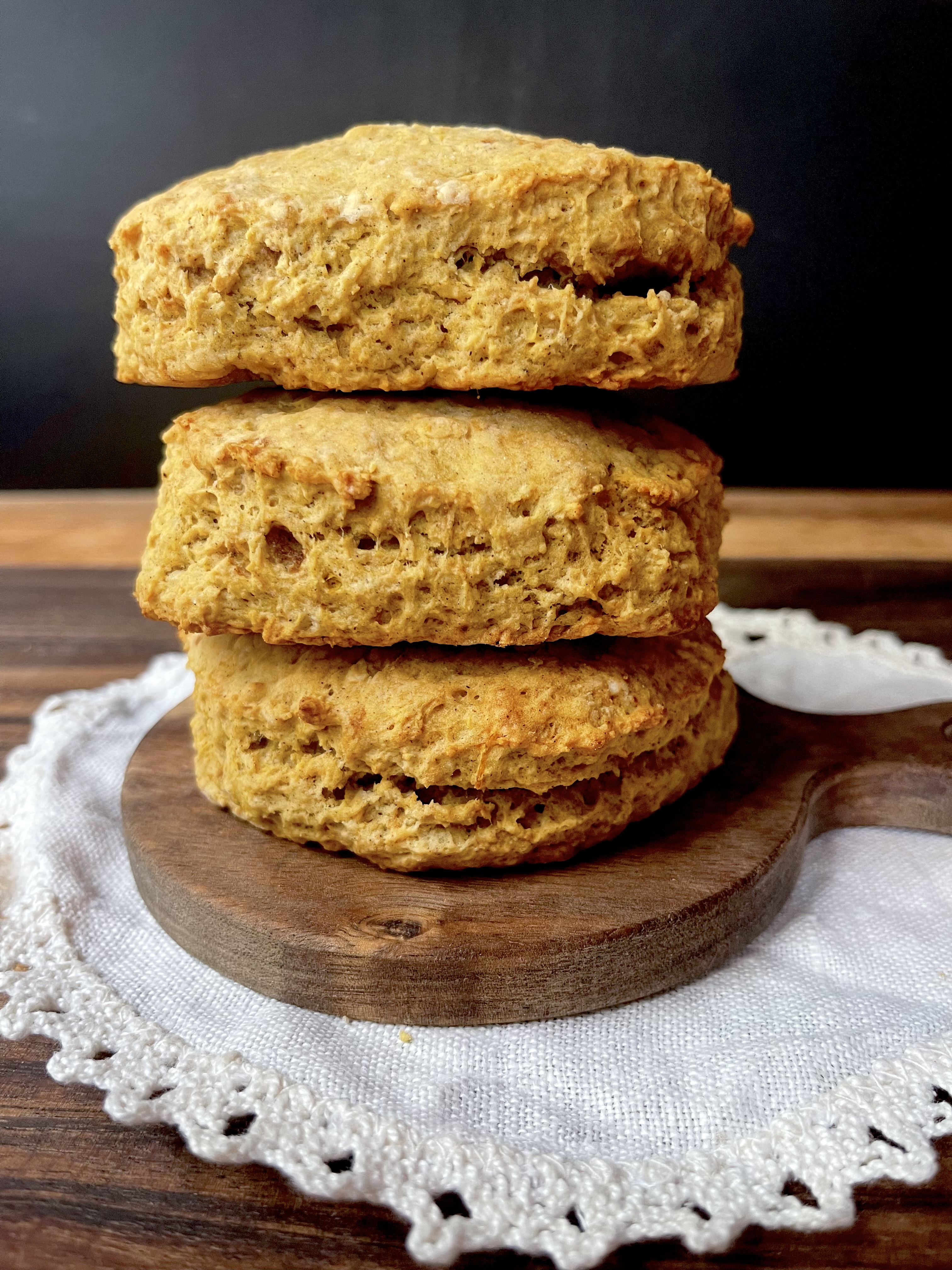 These pumpkin biscuits have just the right amount of pumpkin pie spices that do not overpower the pumpkin puree flavor. It’s super soft inside with golden edges and just a hint of sweetness.