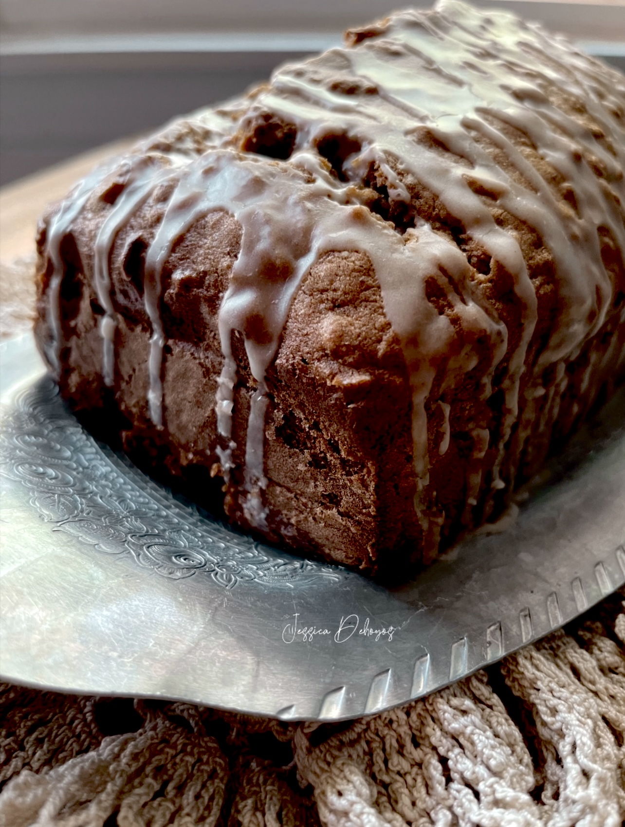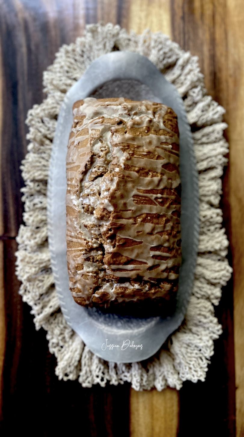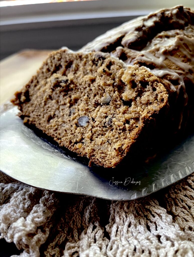 This apple bread is super soft on the inside and the pecans give it the right amount of crunch. The glaze is not overly sweet and compliments the bread. The bread is delicious enough to enjoy without the glaze as well.